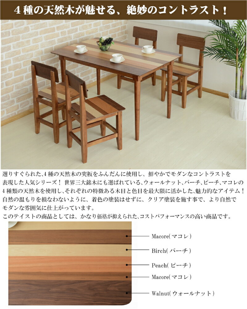 ウォールナット、バーチ、ピーチ、マコレ、4種類の天然木インテリア >>商品画像をクリックすると各販売ページへ移動します。