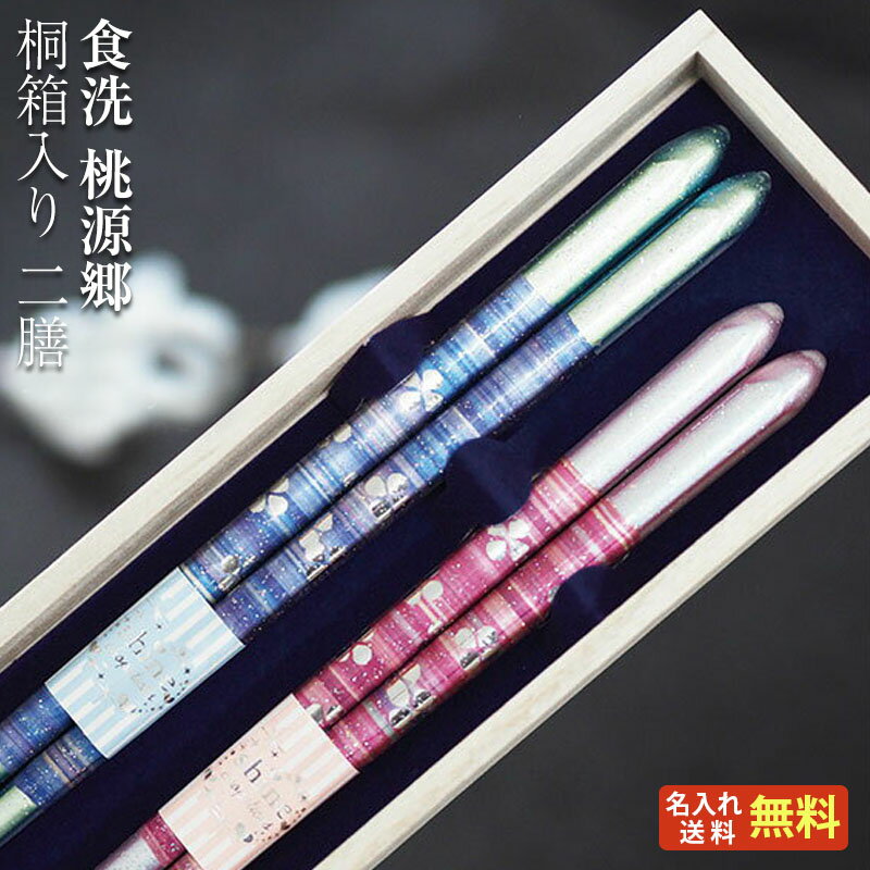 食洗 桃源郷夫婦 桐箱入り 夫婦箸 二膳セット ラメ グラデーション 花柄 伝統柄 食器洗浄機 食洗機対応/箸/名入れ/名前入り/出産祝い/結婚祝い/結婚記念日/両親/ペア/ギフト/プレゼント/内祝い ペア カップル/敬老の日