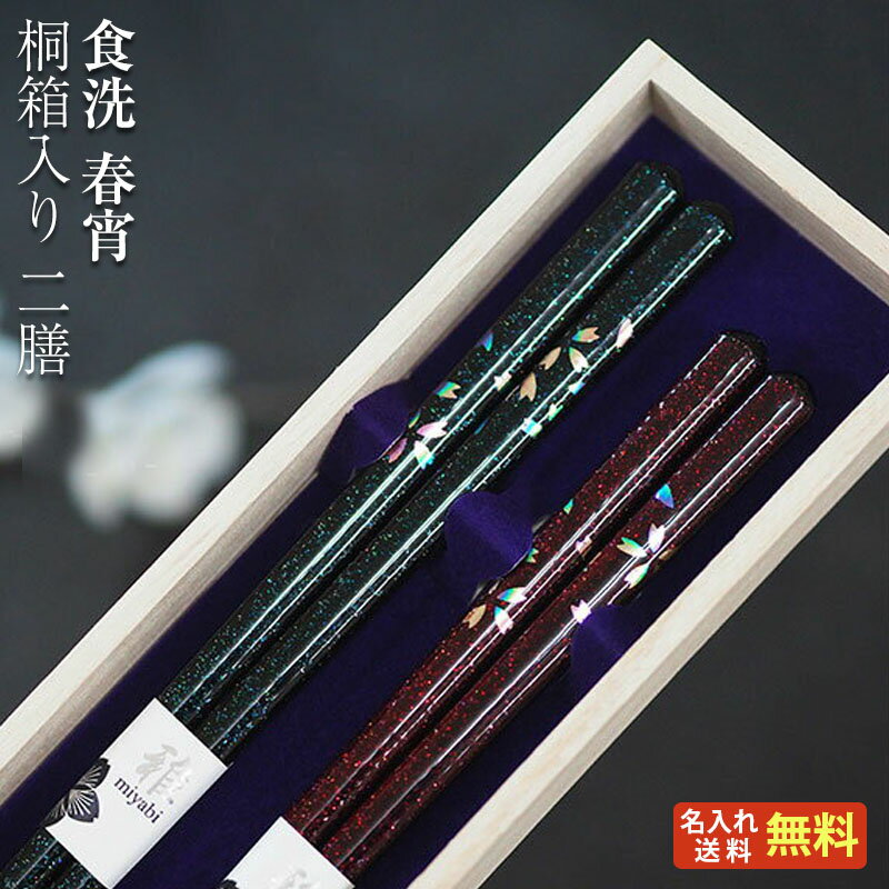 食洗 春宵夫婦 桐箱入り 夫婦箸 二膳セット ラメ 虹色 桜 花柄 伝統柄 食器洗浄機 食洗機対応/箸/名入れ/名前入り/出産祝い/結婚祝い/結婚記念日/両親/ペア/ギフト/プレゼント/内祝い ペア カップル/敬老の日