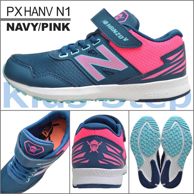 ニューバランス キッズ スニーカー 男の子 女の子 小学生 子供靴 ハンゾー HANZO NEW BALANCE PXHANVN1 ネイビー/ピンク 17〜21.5