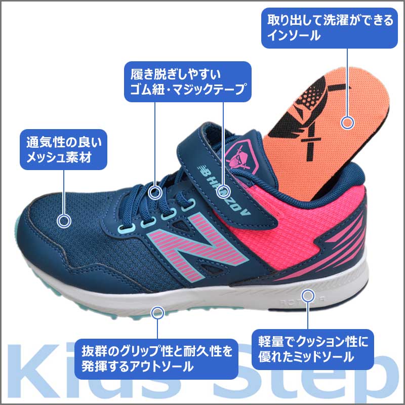 キッズ ランニングシューズ ジュニア 男の子 女の子 ニューバランス Newbalance NB HANZO V ハンゾー/スニーカー 子供靴 17-21.5cm 運動会 小学生 ゴム紐 ベルクロ 運動靴/PXHANV-【RKap】