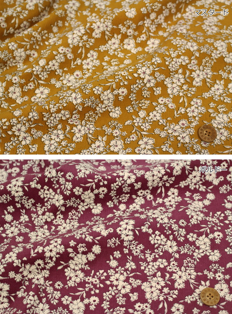 『Lydia≪リディア≫』コットン100%シャツコーデュロイプリント素材:コットン100% 生地幅:約104cm秋冬/花柄/女の子/キッズ/大人/綿/ウェアー/小物/インテリア/手づくり/ハンドメイド/